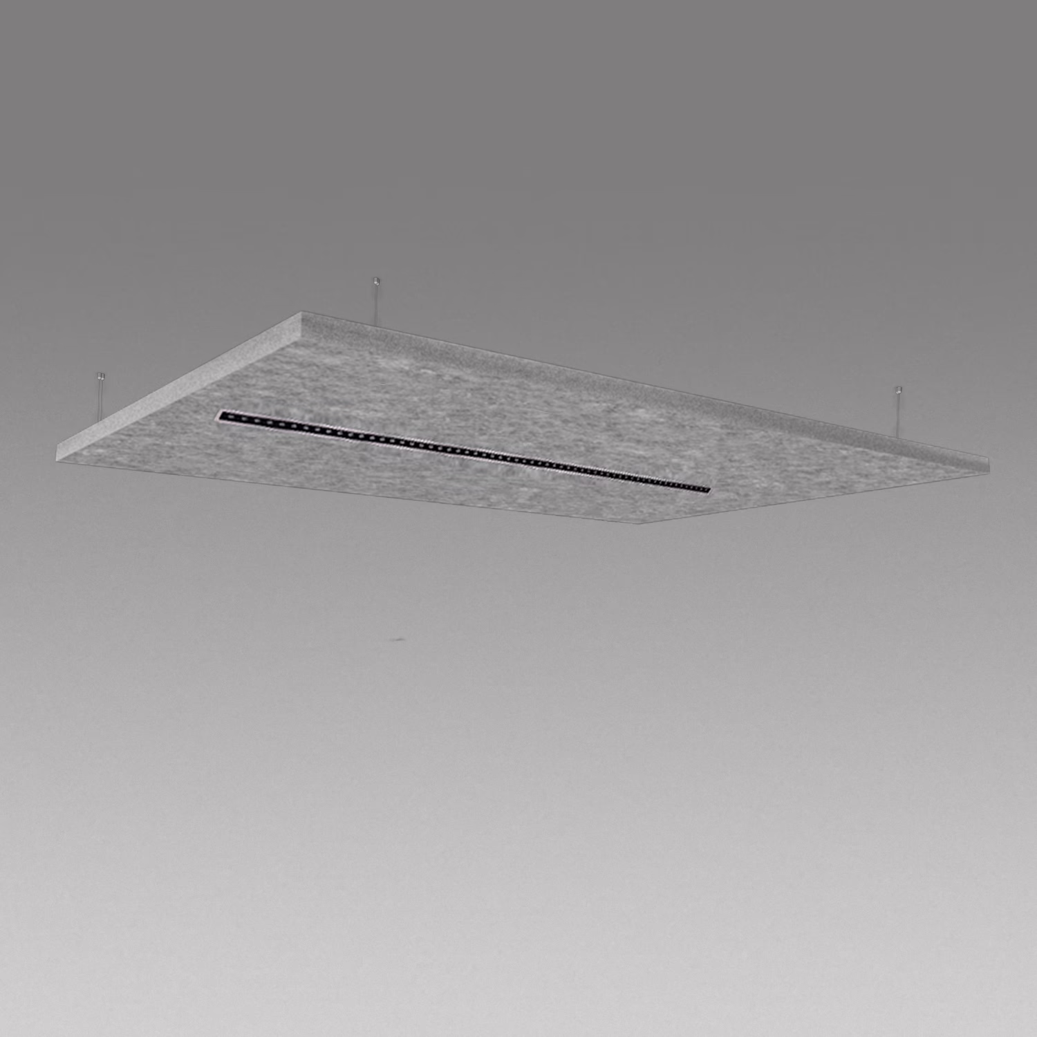 Akustik-Pendelleuchte in schlichtem Design – rechteckig, aus grauem Akustikfilz.